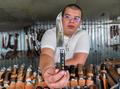 Gegen Mittag wurden wir eingeladen – buchstäblich an der Hand hineingezogen –, eine private Werkstatt zur Herstellung verschiedener Fliesen zu besichtigen. Mit Vergnügen nutzte ich die rauen Innenräume des Betriebs für eine inszenierte Komposition, die mir selbst wie ein Archetyp von Zeit und Ort erschien. Oder vielleicht wie ein Abbild meines eigenen Lebens in diesem von der Sonne verbrannten Landstrich, wo der Herbst nicht nach dem Kalender Einzug hält.