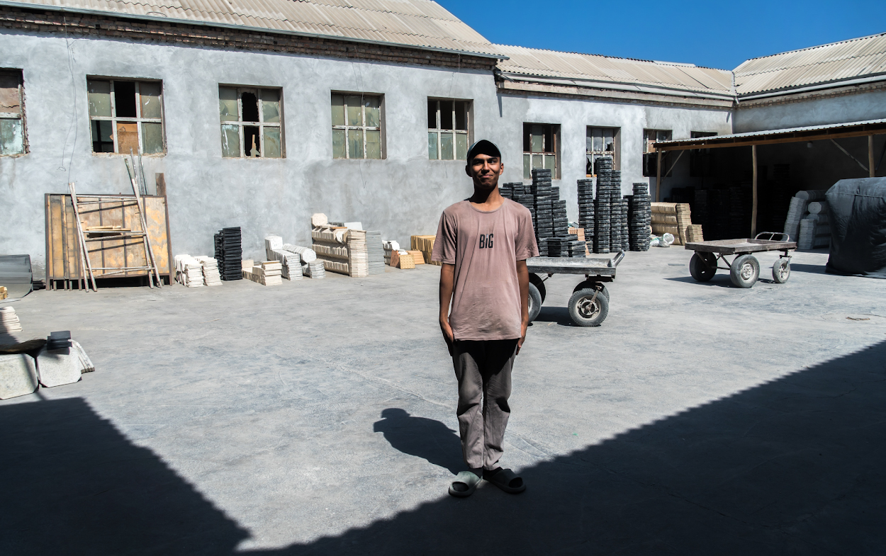 Gegen Mittag wurden wir eingeladen – buchstäblich an der Hand hineingezogen –, eine private Werkstatt zur Herstellung verschiedener Fliesen zu besichtigen. Mit Vergnügen nutzte ich die rauen Innenräume des Betriebs für eine inszenierte Komposition, die mir selbst wie ein Archetyp von Zeit und Ort erschien. Oder vielleicht wie ein Abbild meines eigenen Lebens in diesem von der Sonne verbrannten Landstrich, wo der Herbst nicht nach dem Kalender Einzug hält.
