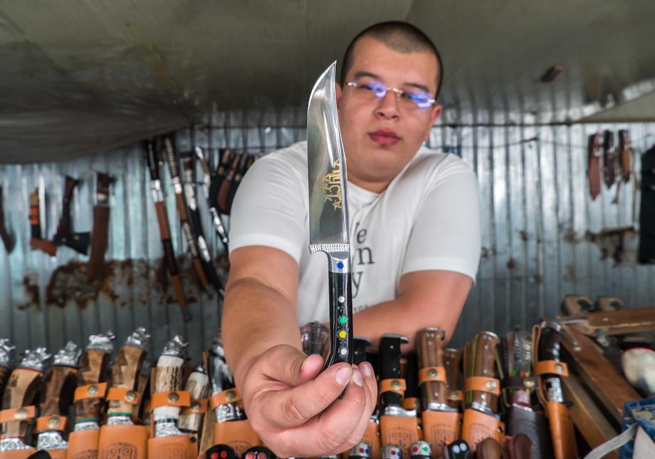 Danach fuhren wir in die Stadt Tschust, auf den Basar der traditionellen Tschuster Messer. Dort fand Anzor Schmiedewerkstätten mit brennenden Schmiedefeuern.